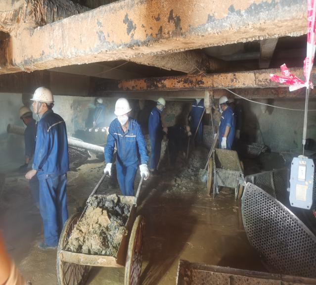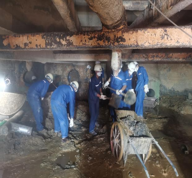 生產班組人員清理吸收塔沉淀物清理